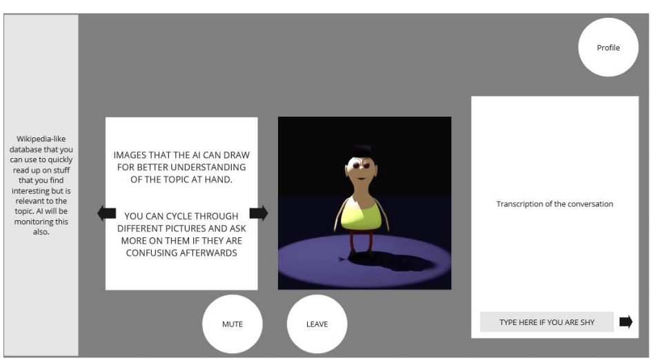 After doing few user research we came this first concept of using a AI conversation model that interacts in real time.