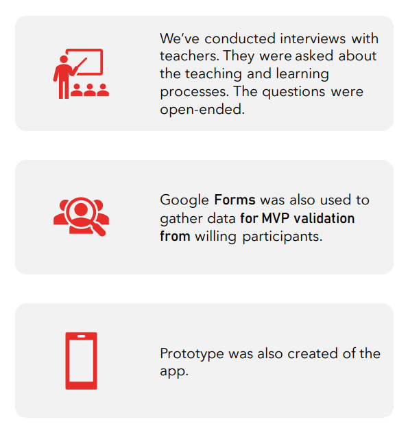 Our research method involved interviewing teachers to gather insights into the main users’ needs, considering ethical limitations regarding direct interviews with children. Teachers, being integral to the educational process, provided valuable perspectives. After conducting the interviews, we meticulously analyzed the gathered data. The interview questions were accessible on the Miro board, and all interviews were compiled in a designated tab in this diary for reference. To ensure ethical compliance, participants were required to fill out a Google form for consent.
